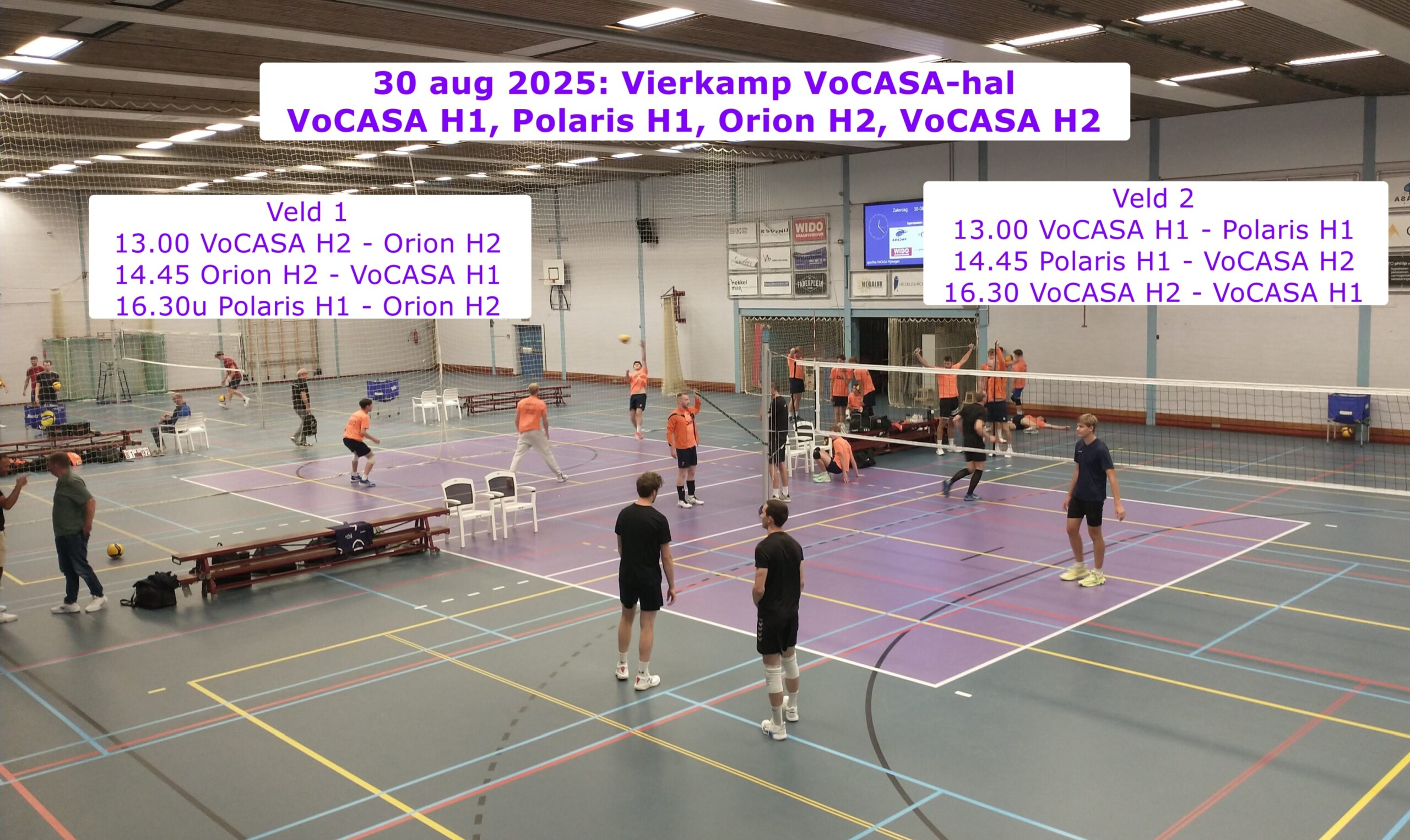 Vierkamp VoCASA-hal Heren met Polaris H1, Orion H2, VoCASA H2 (topdivisie) en VoCASA H1 (superdivisie).
