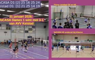 Op 7 februari sloegen de herenteams van VoCASA toe in de competitie. In de middag won VoCASA Heren 3 de stadsderby tegen Heren 2 van Pegasus. Het was een prachtige pot tussen paars en blauw, met rally's die het terugkijken van de livestream waard zijn. VoCASA H3 - Pegasus H23-1 (25-16, 28-26, 25-22, 24-16) [...]
