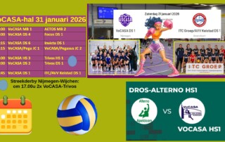 Na een vrij weekend bereiden de topteams van VoCASA zich voor op de wedstrijden van 31 januari. VoCASA Dames 1 speelt dan thuis om 19.45u tegen AVV Keistad, de huidige nummer 1 in de Superdivisie Dames. VoCASA Heren 1 (nummer 1 in Superdivisie Heren) speelt in Apeldoorn om 17.30u tegen Dros-Alterno , de huidige [...]