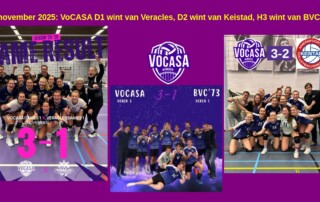 Winst VoCASA Heren 1, 2 en 3 en Dames 1, 2 en 3 op 22 november