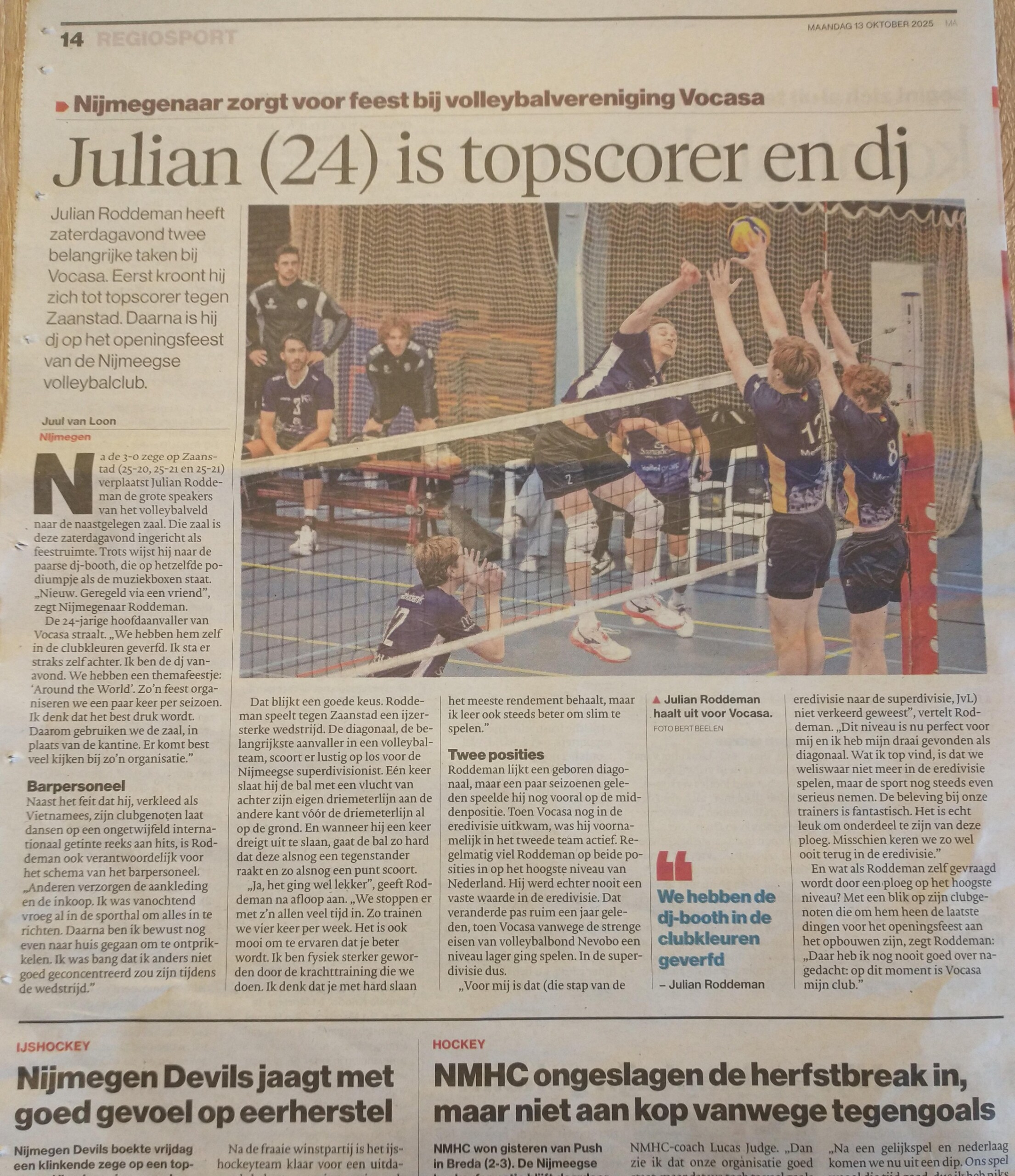 De Gelderlander 13 okt 2025: Julian (24) topscoorder en DJ