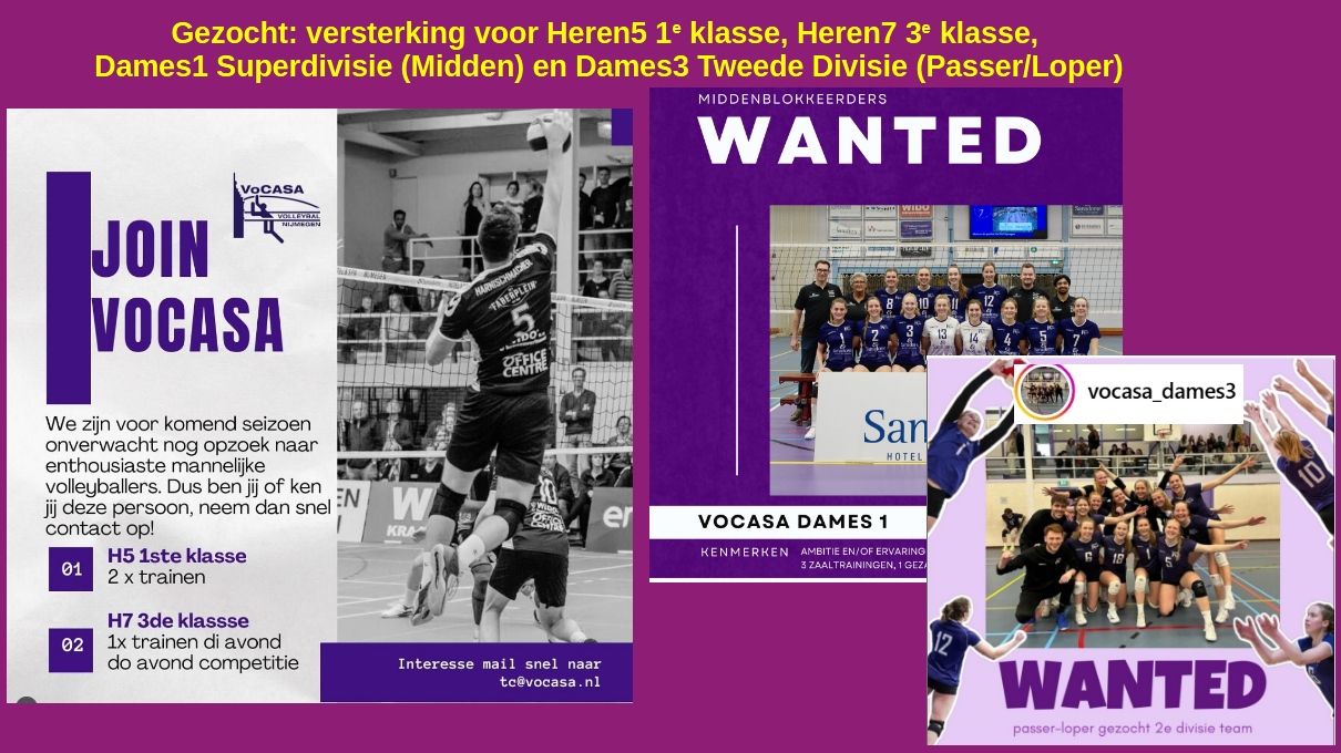 WANTED! Middenblokkeerders voor VoCASA Dames 1, Superdivisie.
