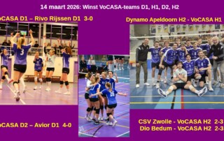 VoCASA Dames1 3-0 op Sliedrecht2. Dames2 3-1 op Havoc. Ook winst H3 en D6 op 28 maart