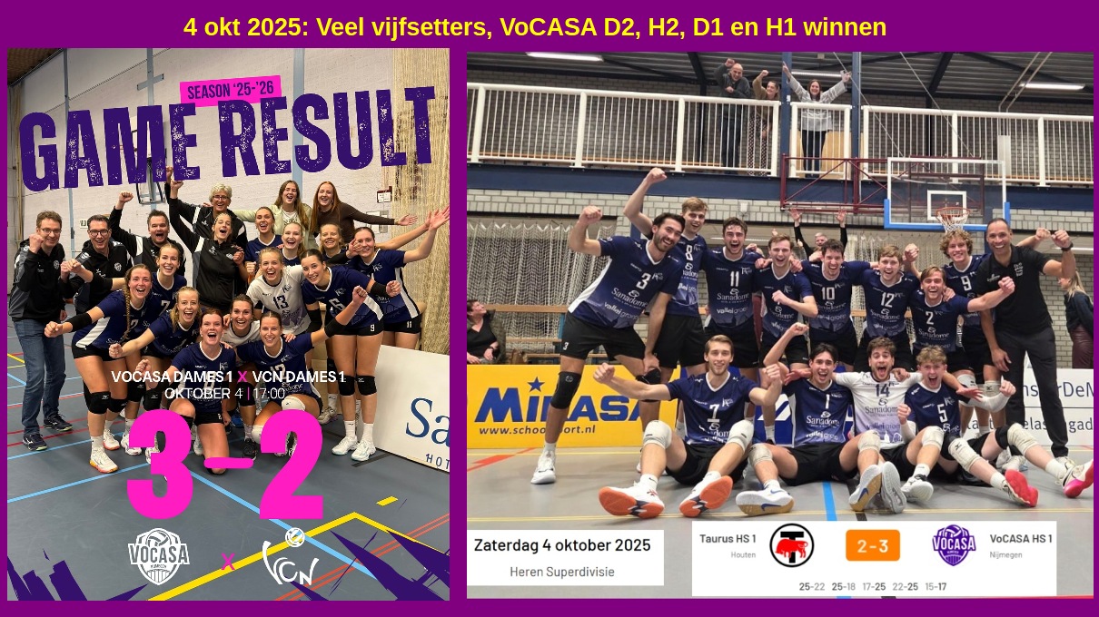 Uitslagen VoCASA-teams 2 t/m 4 oktober 2025