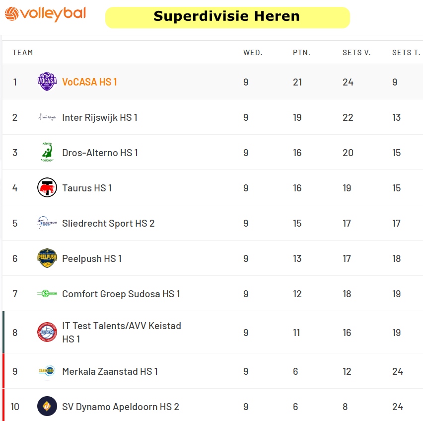 Thuis, in de VoCASA-hal , sloot VoCASA H1 de dag af met een 3-0 overwinning op Peelpush. Daardoor gaan ze als koploper in de Superdivisie het nieuwe jaar in.