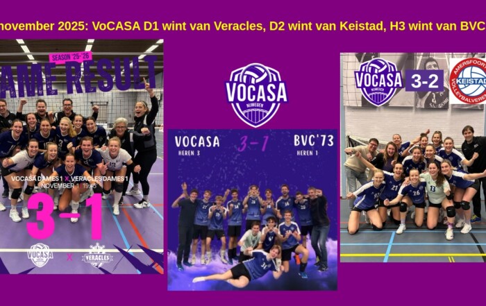 Geen verlaat 'heerlijk avondje' voor VoCASA Dames 1 en Heren 1 op 6 december. De topteams uit Nijmegen moesten een verlies slikken. Gelukkig viel er voor de Nijmeegse volleybalclub te juichen op de velden [...]