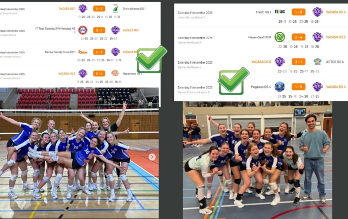 Winst VoCASA Heren 1, 2 en 3 en Dames 1, 2 en 3 op 22 november