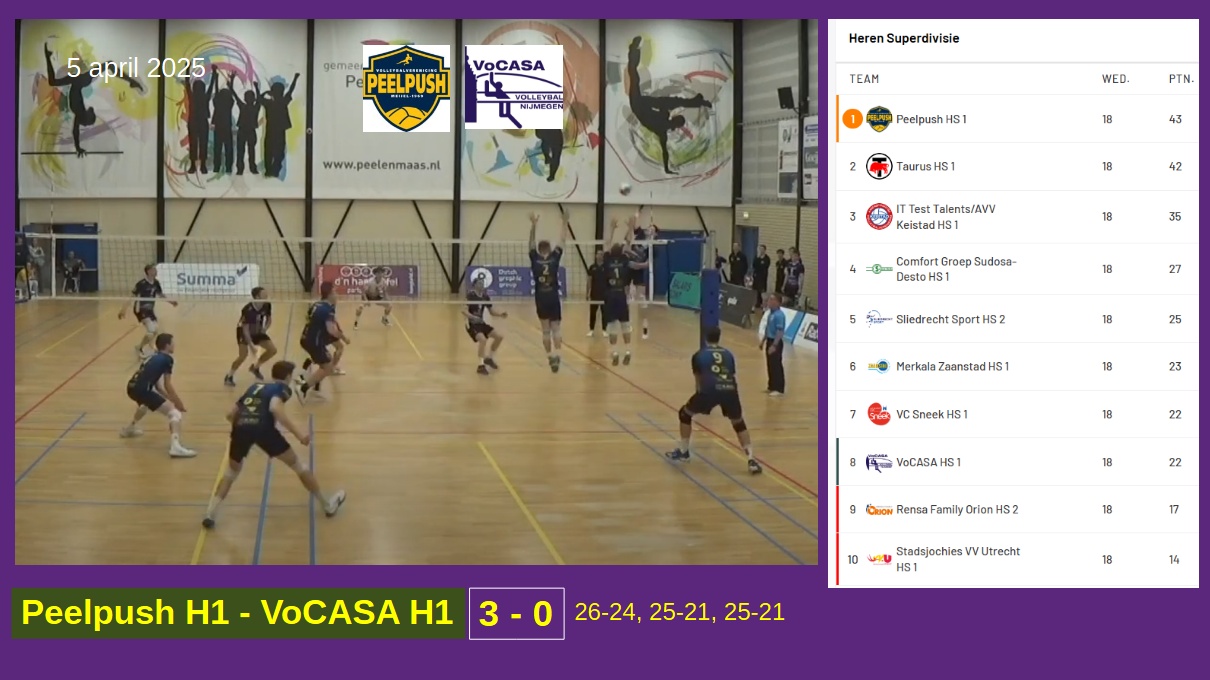 | 7 feb | 17:15 | Sliedrecht Sport HS 2 | - | VoCASA HS 1 |