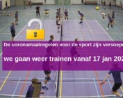 Beste sporters, De coronamaatregelen voor de sport zijn versoepeld. Alle sportactiviteiten binnen en buiten zijn weer toegestaan. Publiek mag nog niet. En alleen onderlinge wedstrijden zijn mogelijk. Dat betekent dat we vanaf maandag 17 januari weer gaan trainen, volgens het bekende rooster. Dat vind je op de site: https://vocasa.nl/volleybal-training-nijmegen/ Er gelden wel wat extra regels: Een coronatoegangsbewijs is verplicht voor sporters van 18 jaar en ouder. De teams zorgen zelf dat van alle teamleden de QR-code gescand wordt. Mondkapjes zijn verplicht voor sporters vanaf 13 jaar, behalve tijdens het sporten. De bar is gesloten. De kleedkamers zijn open. Dus je mag [...]