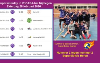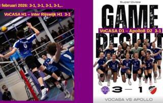Op 13 december 2025 stonden de laatste competitiewedstrijden van 2025 op het programma. Thuis, in de VoCASA-hal , sloot VoCASA H1 de dag af met een 3-0 overwinning op Peelpush. Daardoor gaan ze als koploper in de Superdivisie het nieuwe jaar in. In de wedstrijd daar voorafgaand had VoCASA H2 met enige moeite Orion [...]
